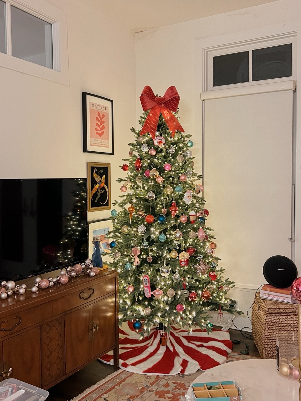 • Mix Your Textures: Combine shiny glass baubles with matte ones, and add soft textures with felt ornaments or pink velvet ribbons.