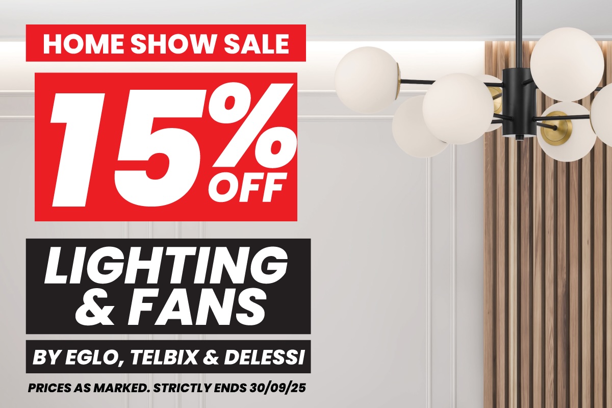 View ExhibitorUpgrade your home with 15% off premium lighting & fans by Eglo, Telbix & Delessi. Available now – Strictly ends 30/09/25.