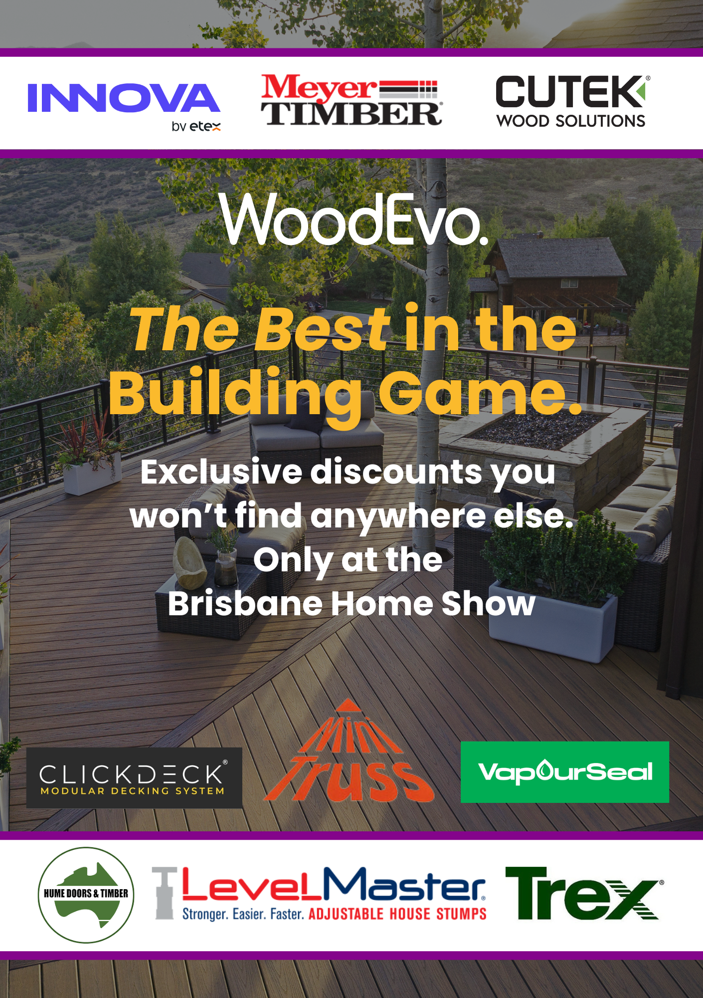 View ExhibitorBuilding, renovating, or planning your dream project? This brochure gives you exclusive access to major discounts from some of the best names in the business all in one place, thanks to Woodstock Timber. We’ve partnered with leading suppliers like Cutek, Trex, WoodEvo, Innova, LevelMaster, Hume Doors, Meyer Timber, VapourSeal, ClickDeck, and MiniTruss to bring you top-quality products at unbeatable value. From frames to finishes, doors to decks — consider this your shortcut to a smarter, more affordable build. Let’s build something great and save while we do it. Simply hit the link and you'll get access to our exclusive catalogue for specials that you will only find at Woodstock Timbers at the Home Show.