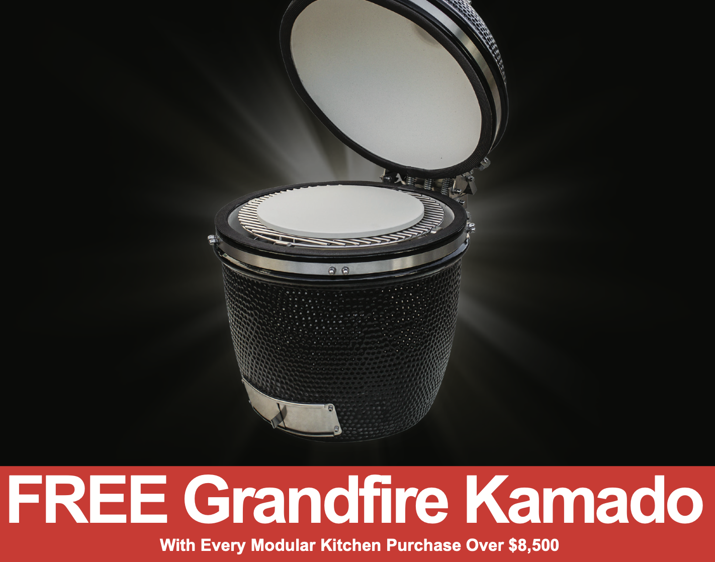 Purchase any outdoor kitchen over $8,500 and receive a free Grandfire Kamado. Lift your backyard setup and enjoy the rich, smoky flavour that only a Kamado BBQ can bring to your cooking.