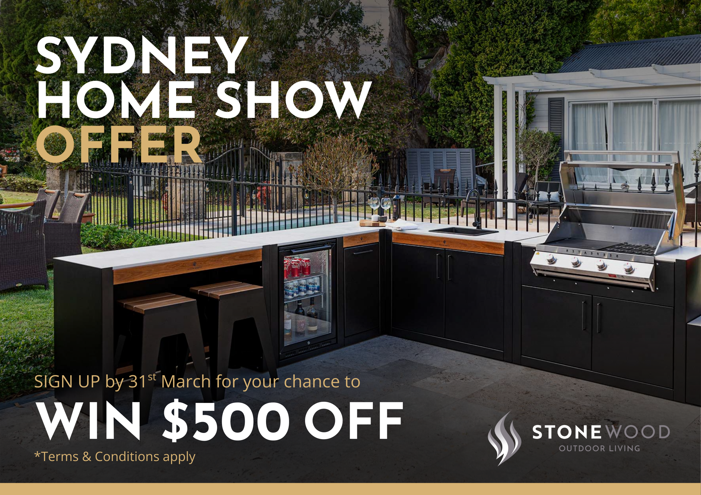 Purchase your outdoor kitchen from Stonewood Outdoor Living in the month of March 2026 to go in the draw for a chance to win $500 off your kitchen